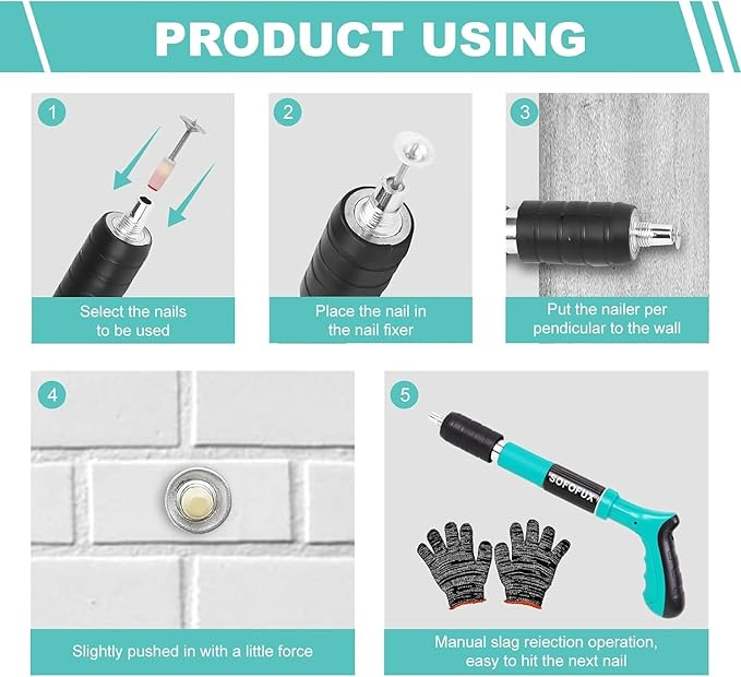 Heavy-Duty Manual Power – Strong fastening force suitable for concrete, brick, wood, and steel.